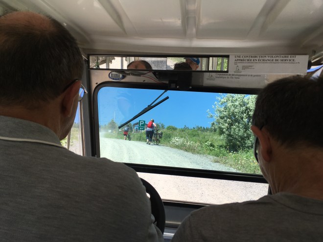 Hier 5 juillet nous avons repris la Transcandienne, Cap à l’est vers le Bas St Laurent et notre première traverse pour l’Isle verte ( photos en haut de l’article). Une merveille…30 habitants l’hiver et à peine plus l’été. On y arrive le plus souvent sans voiture, un charmant monsieur vient vous chercher dans un véhicule comme dans la série Le Prisonnier: trop fun!