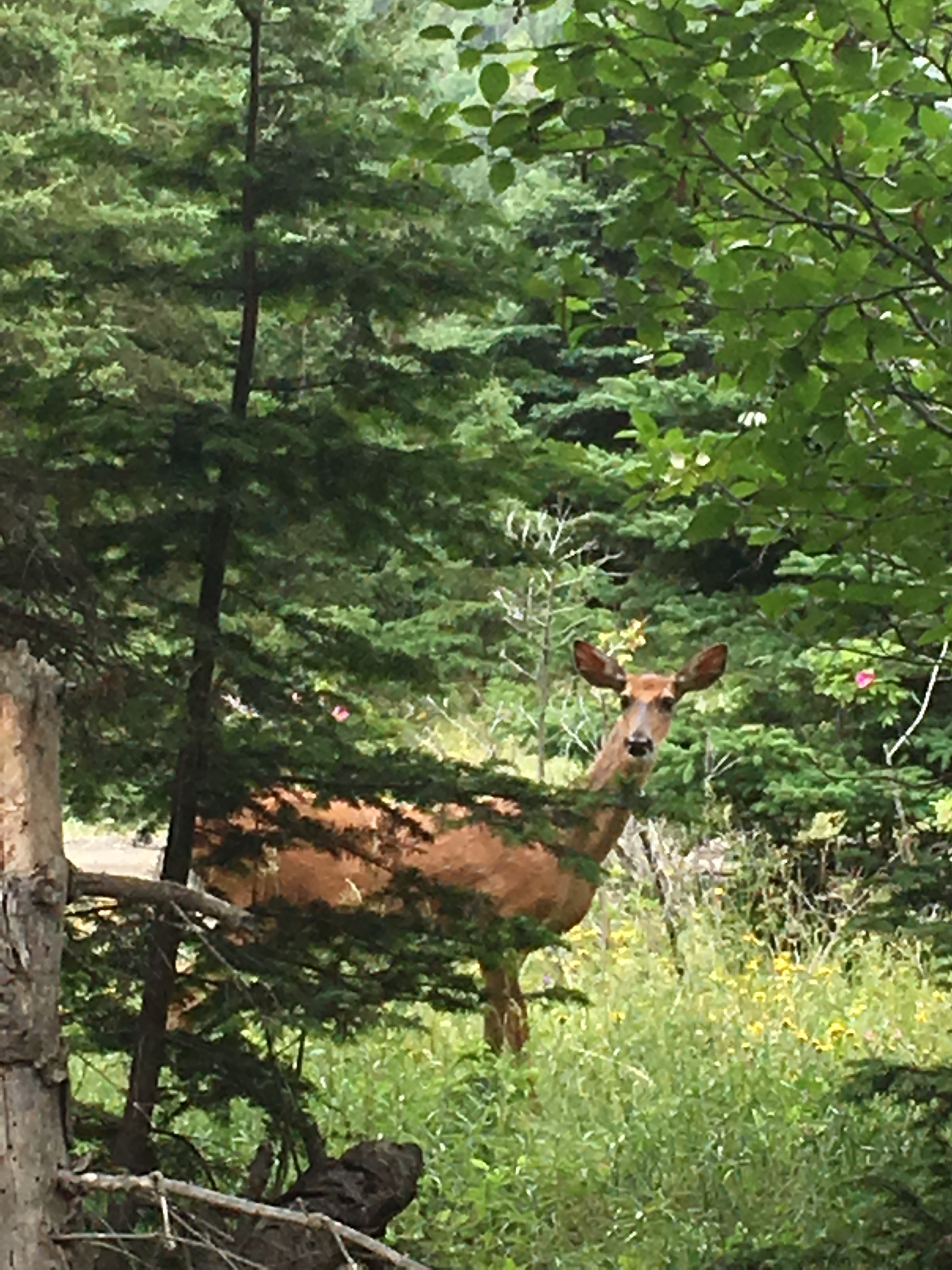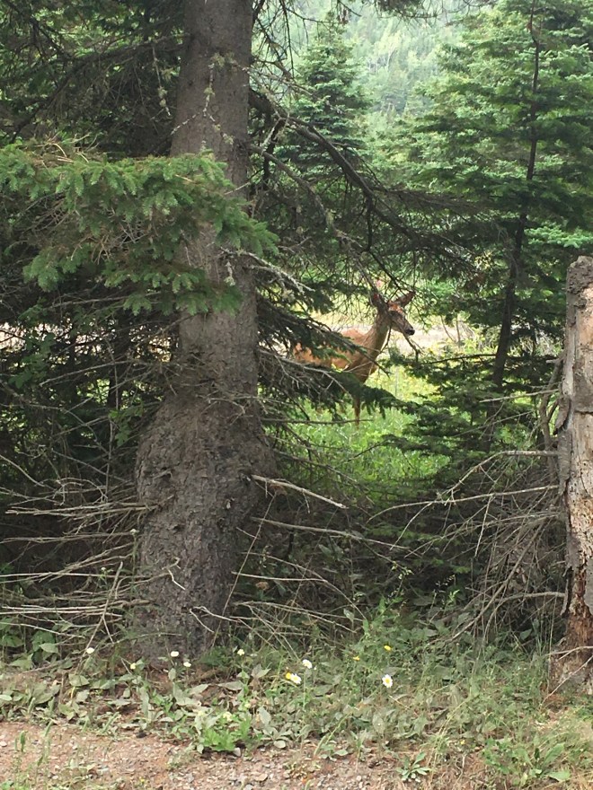 Le Parc est petit à l’échelle des autres parcs nationaux ici, il ne fait « que » 26km carrés mais on rejoint tout de même certains points en voiture, notamment la ferme Rioux, point de départ vers une autre Baie.Durant ce petit trajet je dis à ma famille: » je sais pas vous, mais moi je me sens un peu frustrée de ne pas encore avoir vu d’animaux sauvages. » Et là, pouvoir de la pensée magique, je venais de finir ma phrase quand au détour d’un chemin…