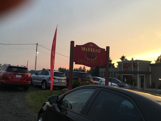 Puis nous décidons d’aller goûter le homard d’ici ( rebaptisé Omar Sy par Didier, excusez c’est la bière aux herbes et les embruns!) à 5mn de la maison au Matelot. La carte est bien fournie en homard, poissons et crustacés mais là encore le vrai régal c’est dehors! Un festival flamboyant qui finit de nous réjouir l’âme au début de ce 2e weekend québécois..Et oui nous sommes arrivés dimanche 2/07: le temps file comme du sirop d’érable sur une crêpe j’vous l’dis!