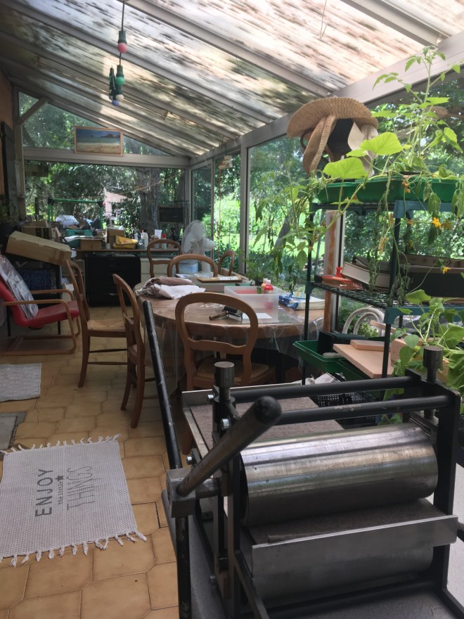 Petit stage organisé dans le jardin et la véranda avant voyages et expos d’été…