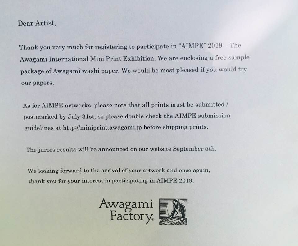 Voici venues les « grandes vacances » et la possibilité de mener à terme de grands projets. Je commence par la participation à deux expos/ candidatures à des expositions de mini estampes (miniprints). Une initiée par un atelier de gravure en Grande-Bretagne, l’autre par l’entreprise de fabrication de papier washi -Awagami- située au Japon.