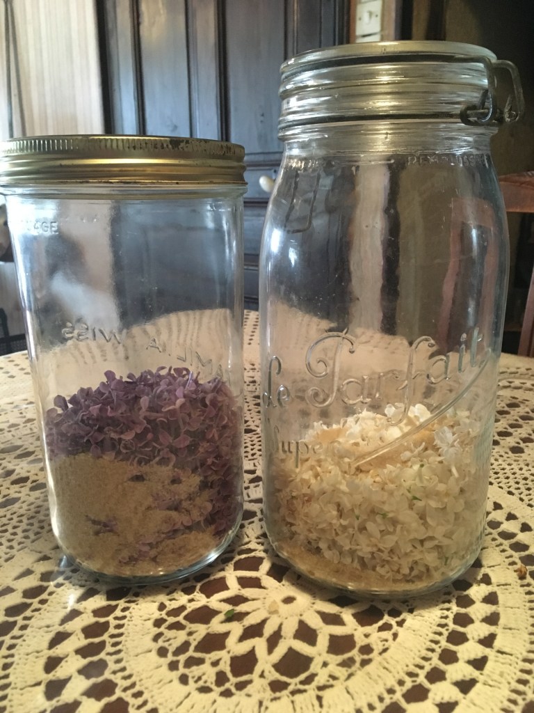 • Du vin de lilas ( en macération… je le mettrai en bouteille juste avant mon départ),