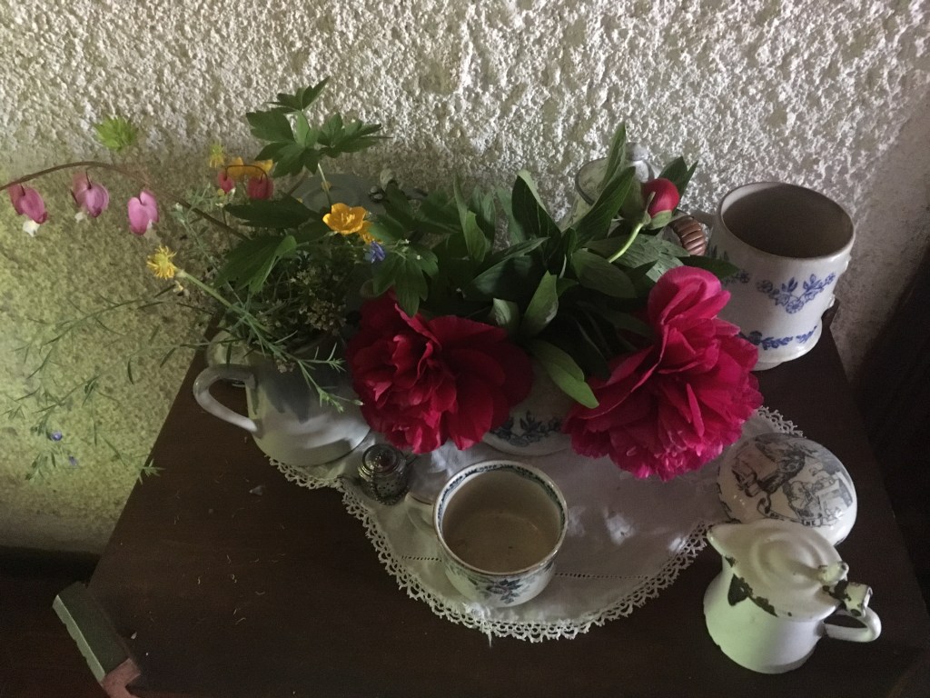 8 mai… 8ème week-end  » Restez chez vous ». L’heure de plier bagages approche et je me demande ce que je vais rapporter de ce séjour dans mes valises. Pas de surcharge de biens matériels: ici, en deux mois, je n’ai rien acheté hormis de la nourriture. Pourtant j’ai mille petites choses qui pourraient me suivre et m’accompagner dans mon retour en « ville »: le Terrier de Weasley -ce puzzle en 3D et 450 pièces ? Non, lui va rester ici en souvenir ; les bouquets de lilas et de pivoines ? Trop fragiles, déjà fanés… Les petits gâteaux, les pâtisseries qui ont égayés nos fins d’après-midi confinés? Déjà engloutis !