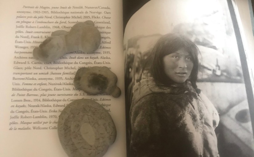 « A l’origine du roman, il y a la découverte fortuite , en 2011, de minuscules sculptures inuit en os, en ivoire, en pierre tendre, en bois de caribou … D’innombrables lectures ont suivi, provoquant un irrépressible besoin d’exploration romanesque- jusqu’à une immersion finale de dix mois dans le fonds polaire Jean Malaurie, et le fonds d’archives Paul-Emile Victor, tous deux conservés à la Bibliothèque centrale du Museum national d’histoire naturelle, à Paris. »