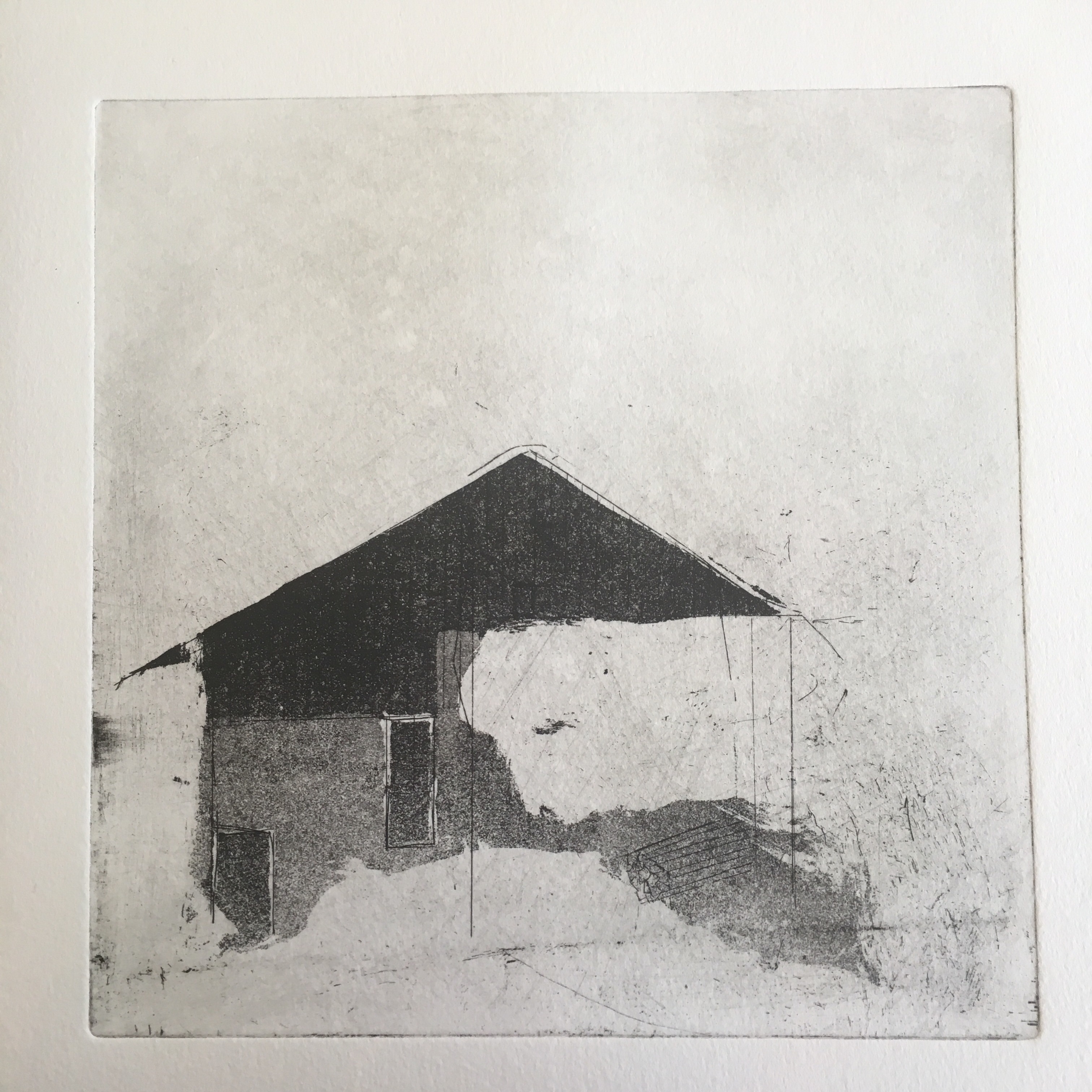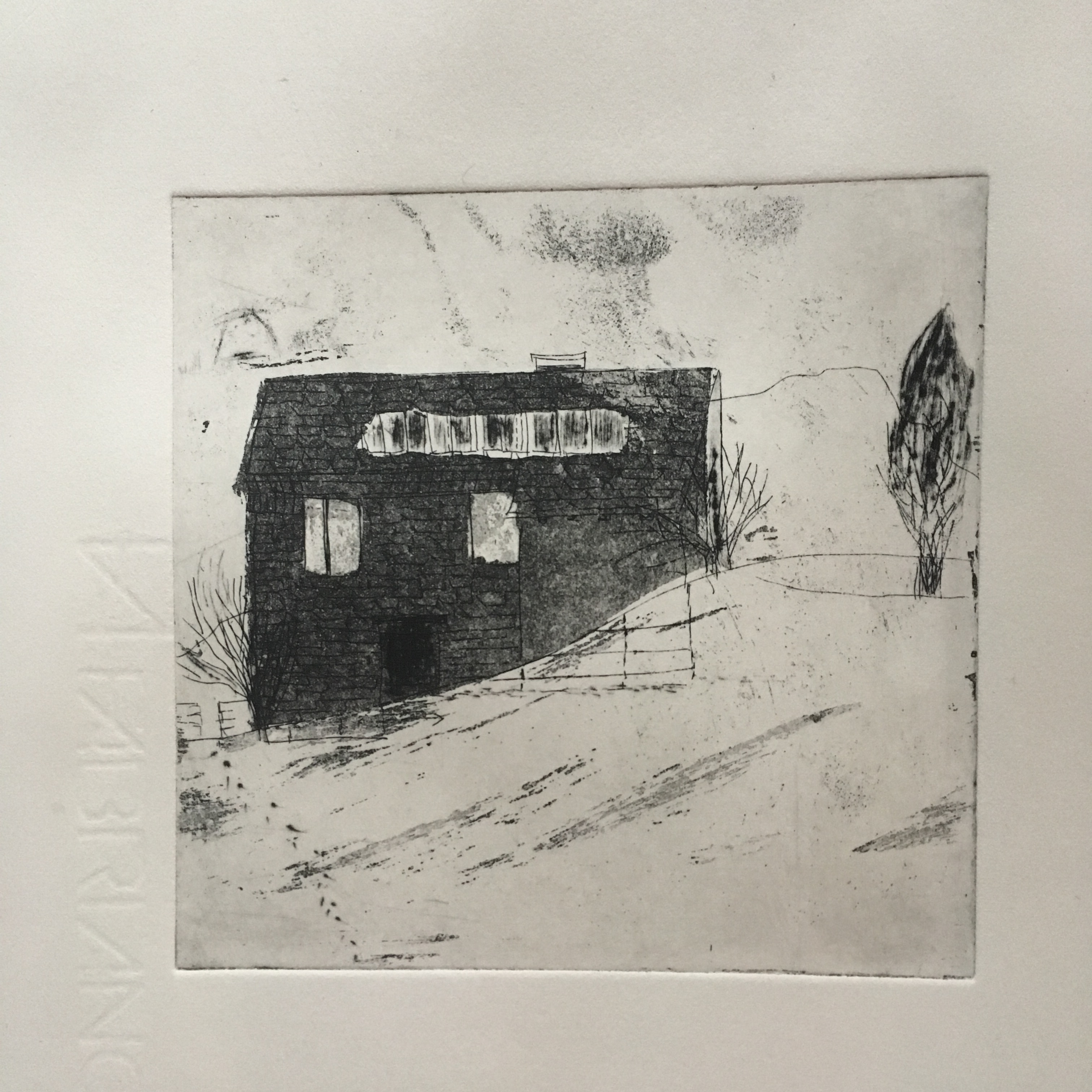 Série maison, eau-forte au trait1ere aquatintereprise à la pointe sècheaquatinte et rehauts à la pointe sèche
