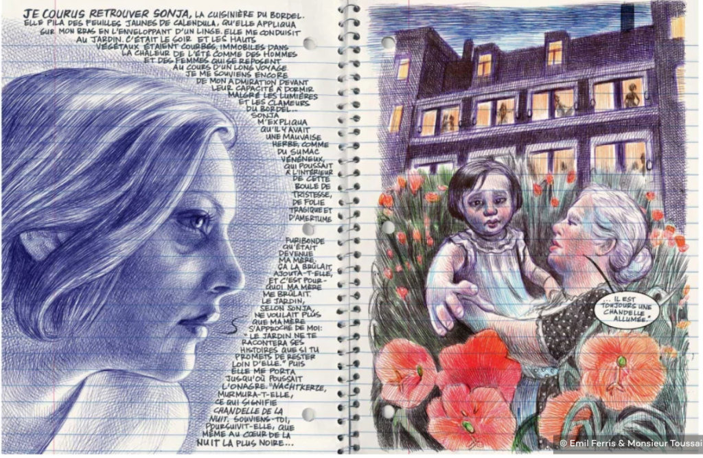 La plupart des scènes se déroulent dans le jardin des grands-parents, dans l’Orne, où l’auteur passaient ses vacances. Ses souvenirs nous ramènent vers la fin des années 60 ou 70, dans un monde où flotte » le parfum de l’enfance, l’envie que le monde soit ouvert, généreux, coloré, porteur de promesses et de beauté. «