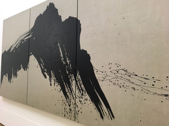 La salle consacrée à ces carnets de recherches m’a aussi beaucoup intéressée, ainsi que la diversité de ses sources d’inspiration: peinture et philosophie chinoises, signes linguistiques ( avec Alain Rey) recherches de correspondances entre peinture et musique à la Juilliard SChool, et actuellement exploration des neurosciences.