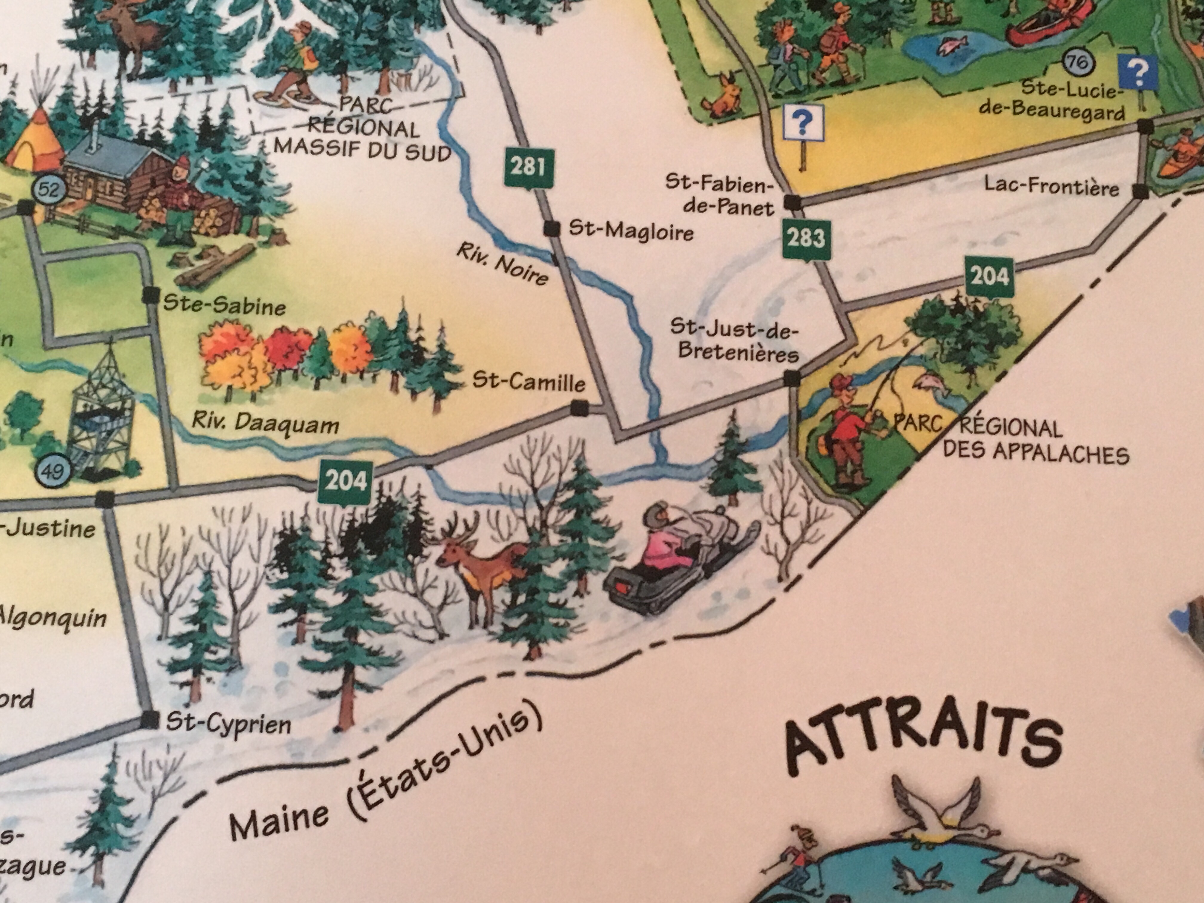 Ah…l’échappée belle: quitter la ville en route pour les Appalaches. Rien que le nom me fait rêver. Une fois passé le Pont de Lévis, nous voilà dans le Québec que j’aime: longues lignes droites entrecoupées de pistes de moto-neige, églises visibles des lieues à la ronde, grands silos, champs de bleuets pour l’heure enfouis sous le blanc…
