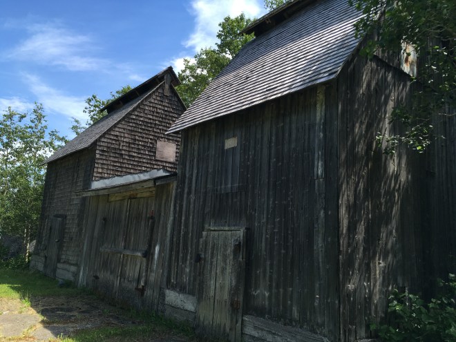 Avant de prendre la route pour Bic, visite du jardin et des dépendances, avec l’atelier de couture de Sandra ( un rêve d’atelier) et les deux roulottes qui sont aussi aménagées pour les voyageurs.