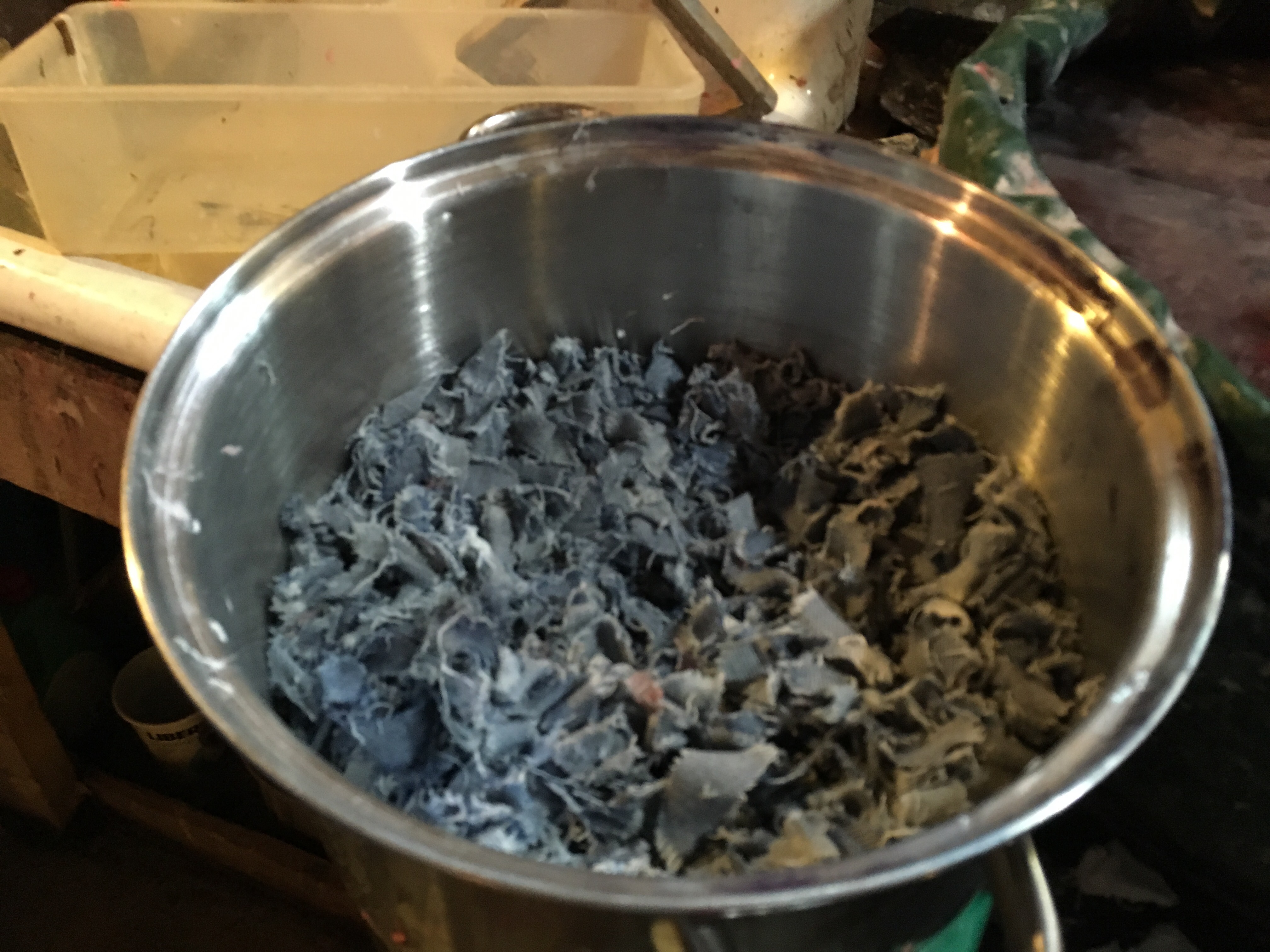 Visite de la boutique-atelier, explication de la fabrication du papier chiffon, depuis les bouts de tissu à la feuille de papier avec inclusion de végétaux.